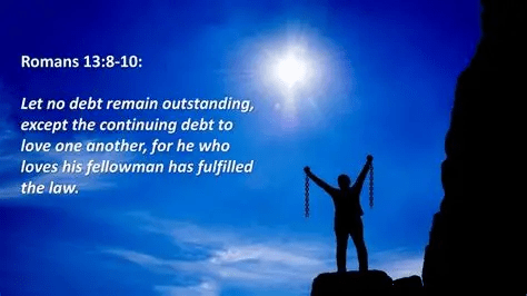 We pay our debts, steeped in Godly love, Living each moment as if following the above. Our relationships are a debt lived to be paid, Loving each other if our lives are not mislaid.