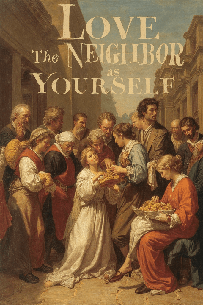 Loving our neighbors as ourselves, We walk the Bible right off the shelf. Embracing the Gospel in our maturity, Our lives are lived contentedly in our society.