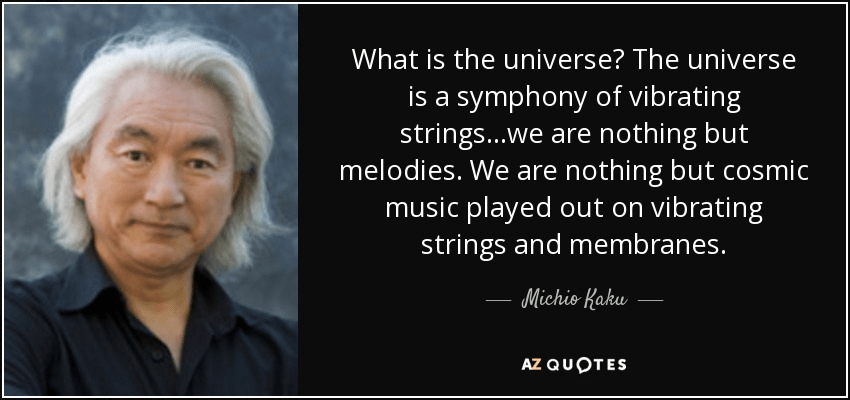 “What is the universe? The universe is a symphony of vibrating strings…we are nothing but melodies. We are nothing but cosmic music played out on vibrating strings and membranes.” – Michio Kaku