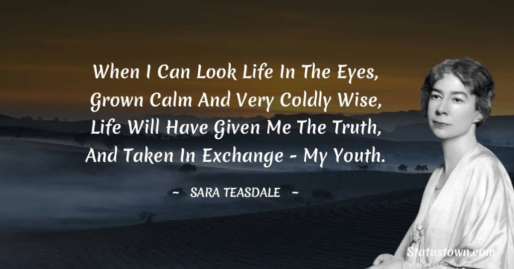 “When I can look life in the eyes, grown calm and very coldly wise, life will have given me the truth, and taken in exchange – my youth.” – Sara Teasdale