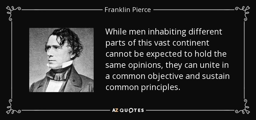 “While men inhabiting different parts of this vast continent cannot be expected to hold the same opinions, they can unite in a common objective and sustain common principles.” – Franklin Pierce