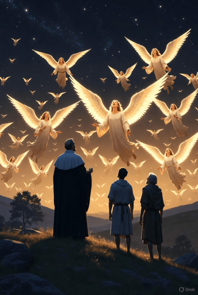 This song tells of a time when angels offered a proclamation That called mankind to bravely give our love and dedication. The Mishnah speaks as a matter of venerable interpretation, The witnessing shepherds were priests charged with dedication.